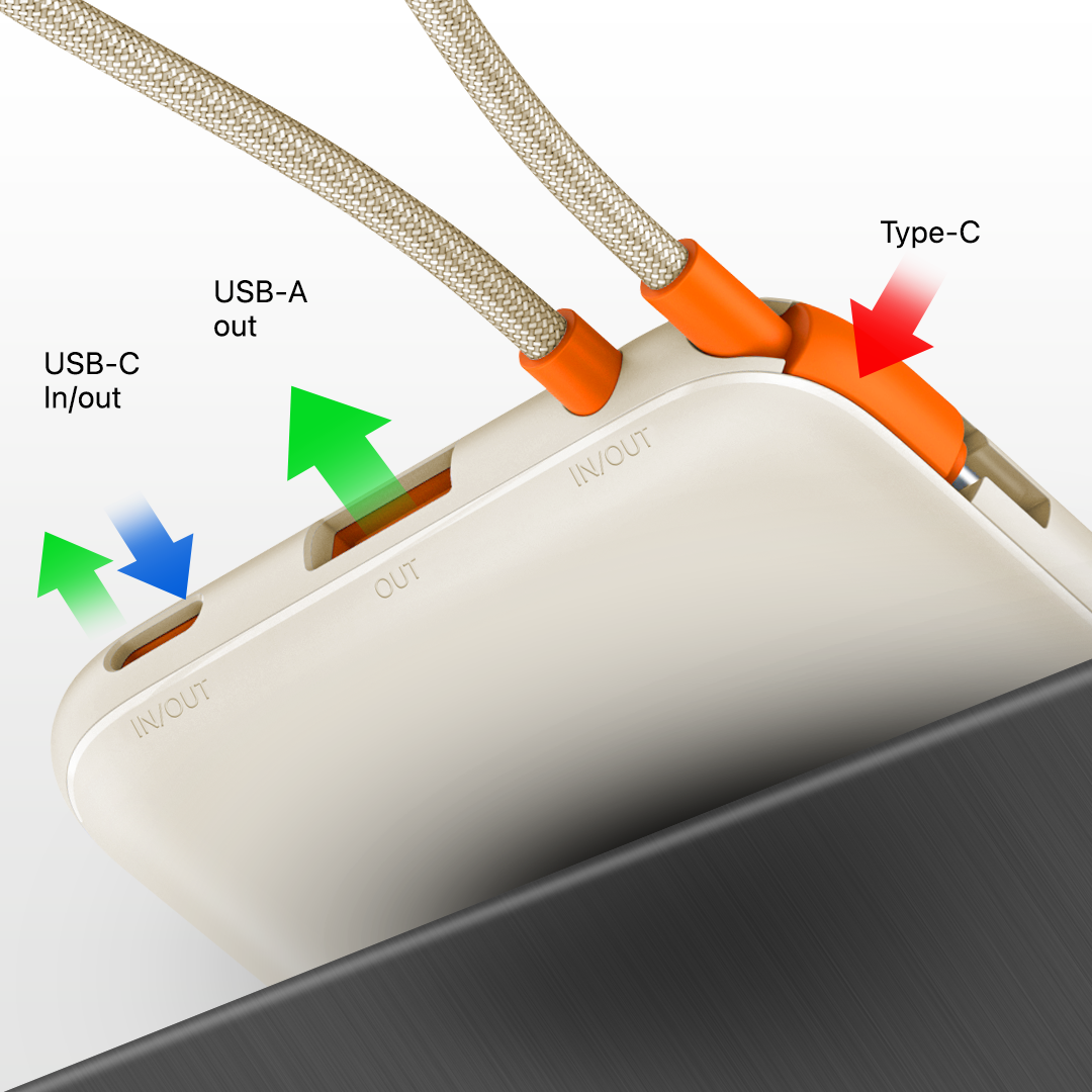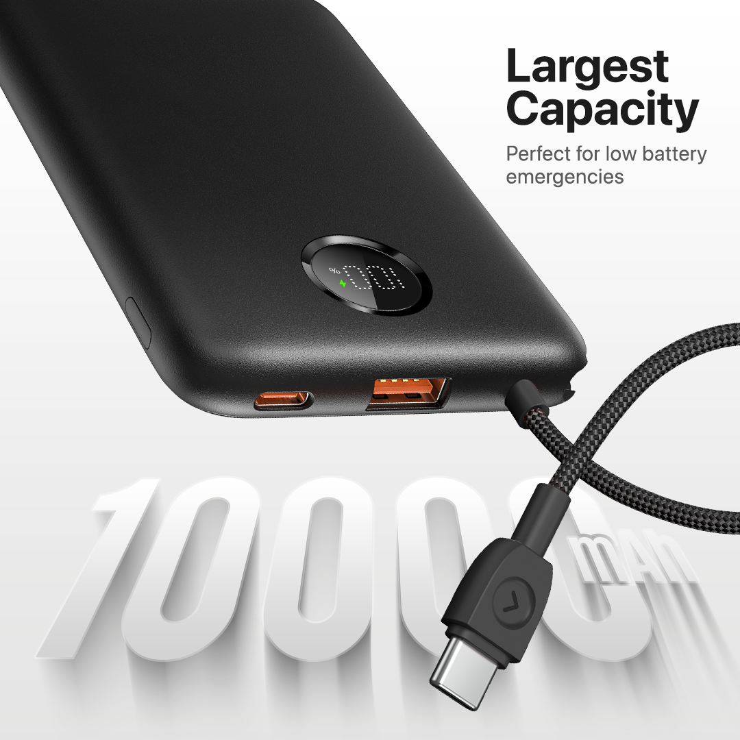 10,000mAh (38.5Wh) capacity in a slim and lightweight design, perfect for travel and daily use.
